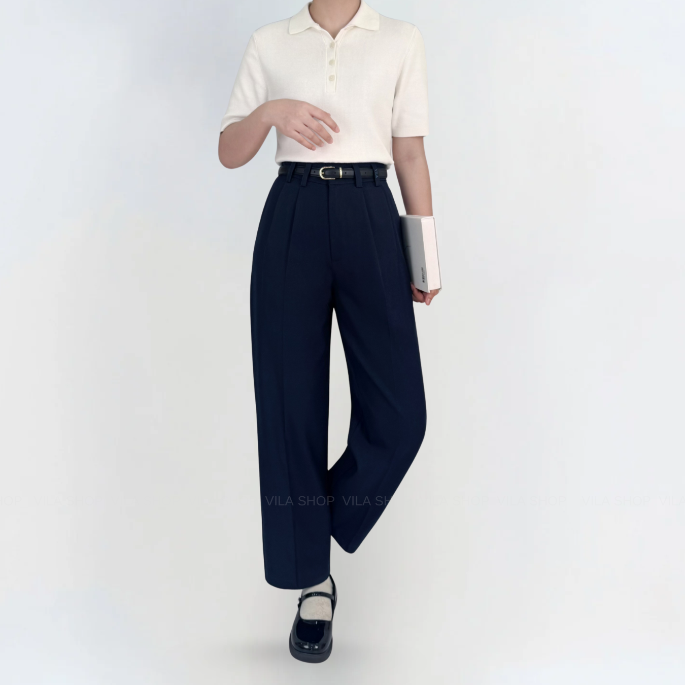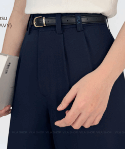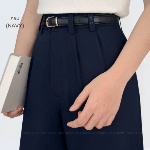 - แต่งจีบหน้า 2 จีบทั้ง 2 ข้าง กระเป๋า 2 ข้าง ใช้งานได้จริง เพิ่มความเรียบร้อยและมีดีเทลงานปัก VILA ที่หูเข็มขัด