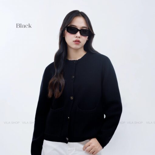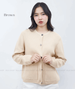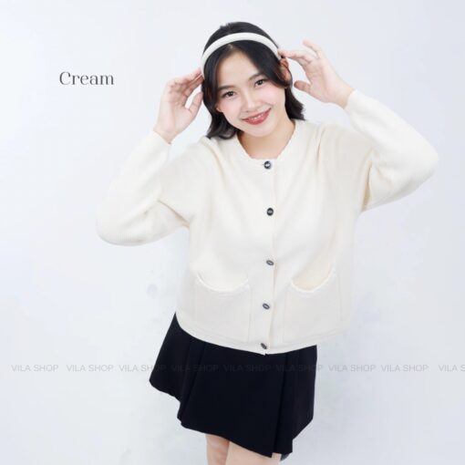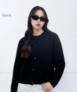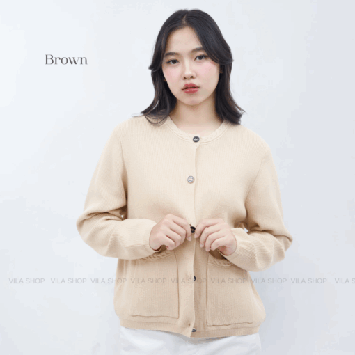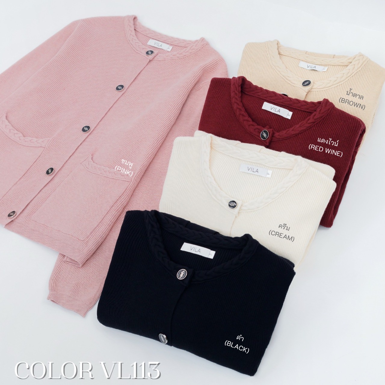 VILA | Roselle VL113 เสื้อคาดิแกนคอเปียกระเป๋าหน้า
